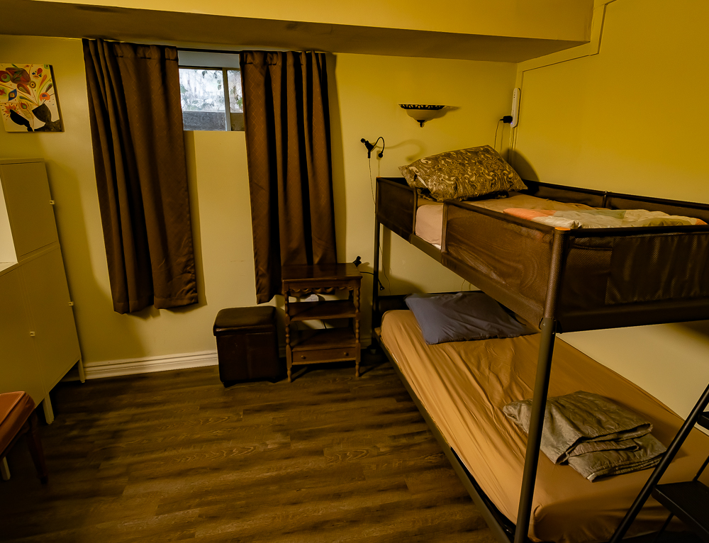Downstairs, we offer a 4-bed dormitory for all women and non-binary guests. There are two bunk beds.