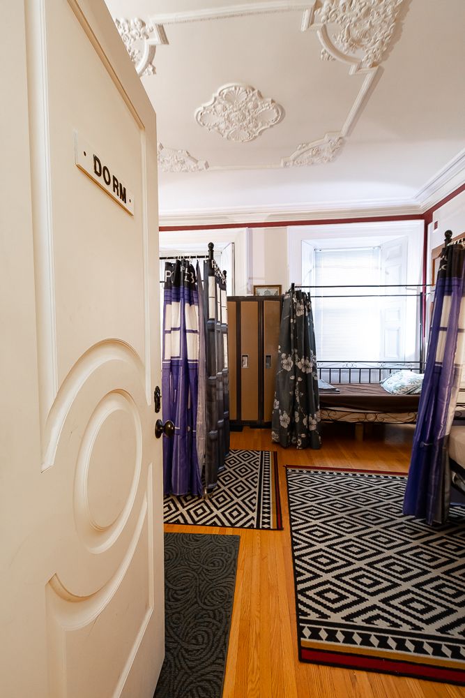 On the ground floor, we have a 6-bed mixed dormitory, available to all guests! There are four day beds with curtains, and one bunk bed.